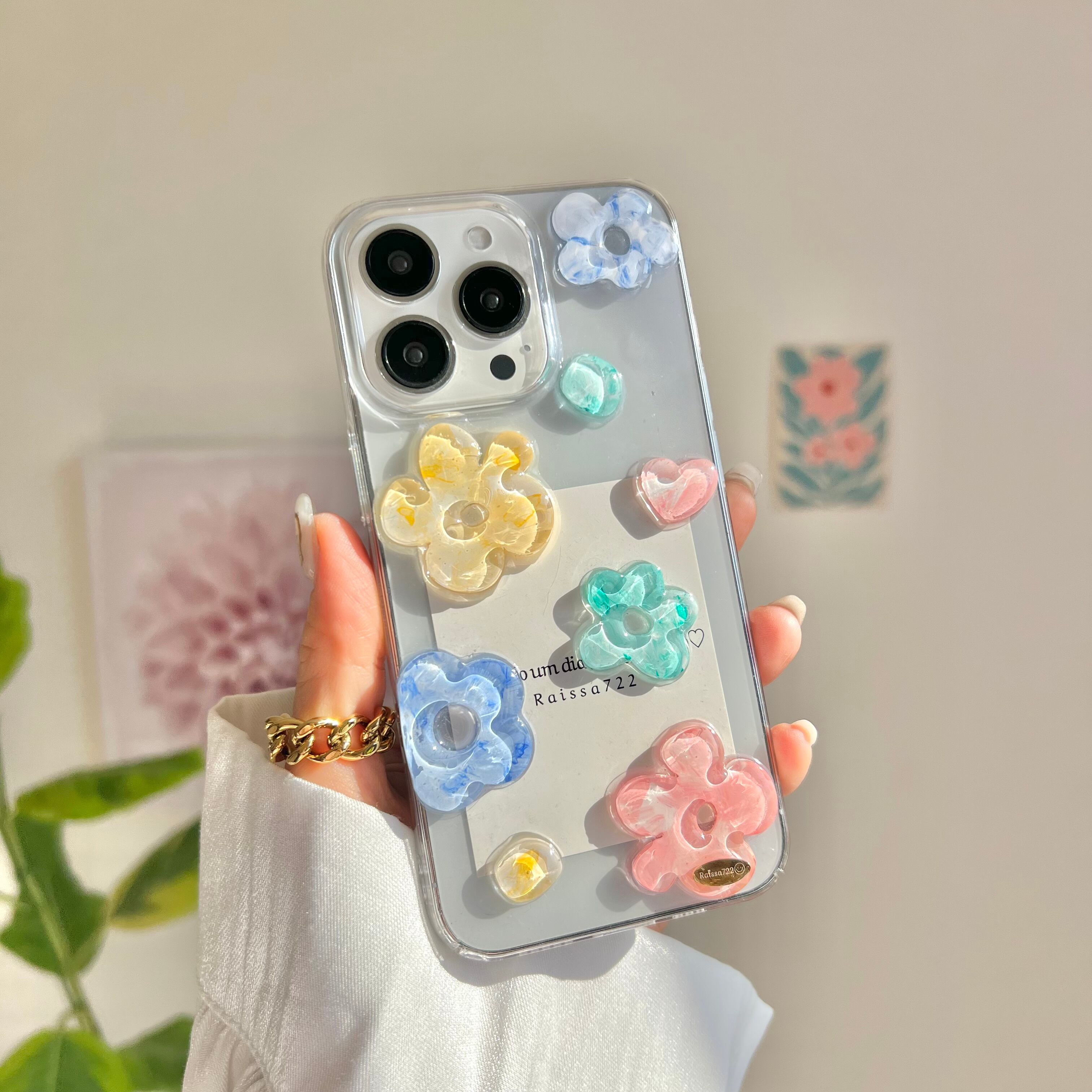 R166 ペイントフラワー 手描き ハンドメイド ぷっくり 高見え 大人女子スマホケース iPhoneケース クリアケース