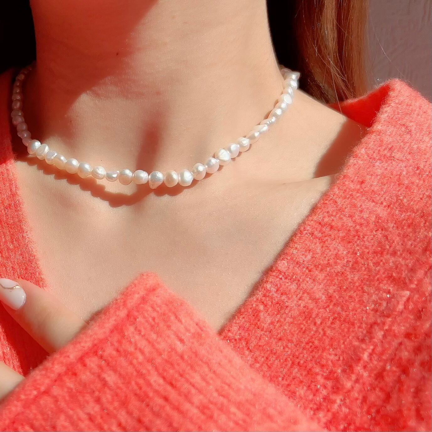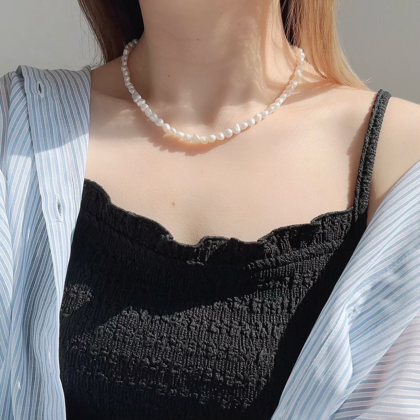 上品な艶を持つパールだけで仕上げた、シンプルで大人可愛いネックレス♡