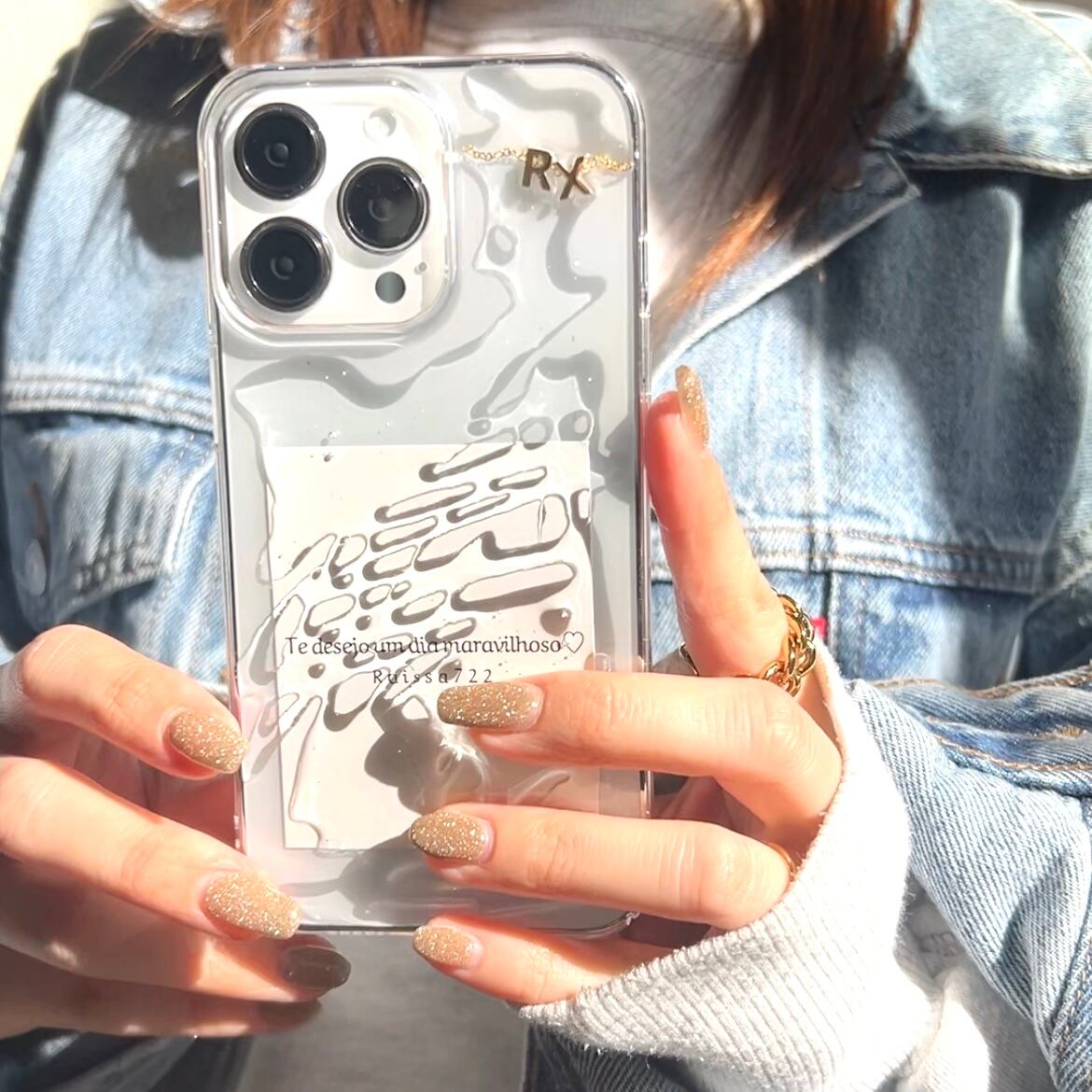 R180 こぼしたん?【イニシャル付】 スマホケース 全機種対応 クリアケース iPhoneケース 透明ケース