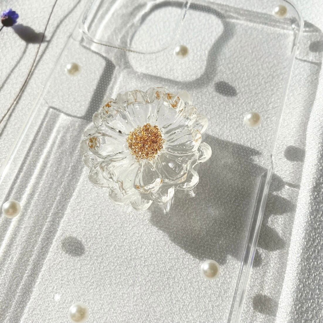 R15コスモスと小つぶパール スマホケース 全機種対応