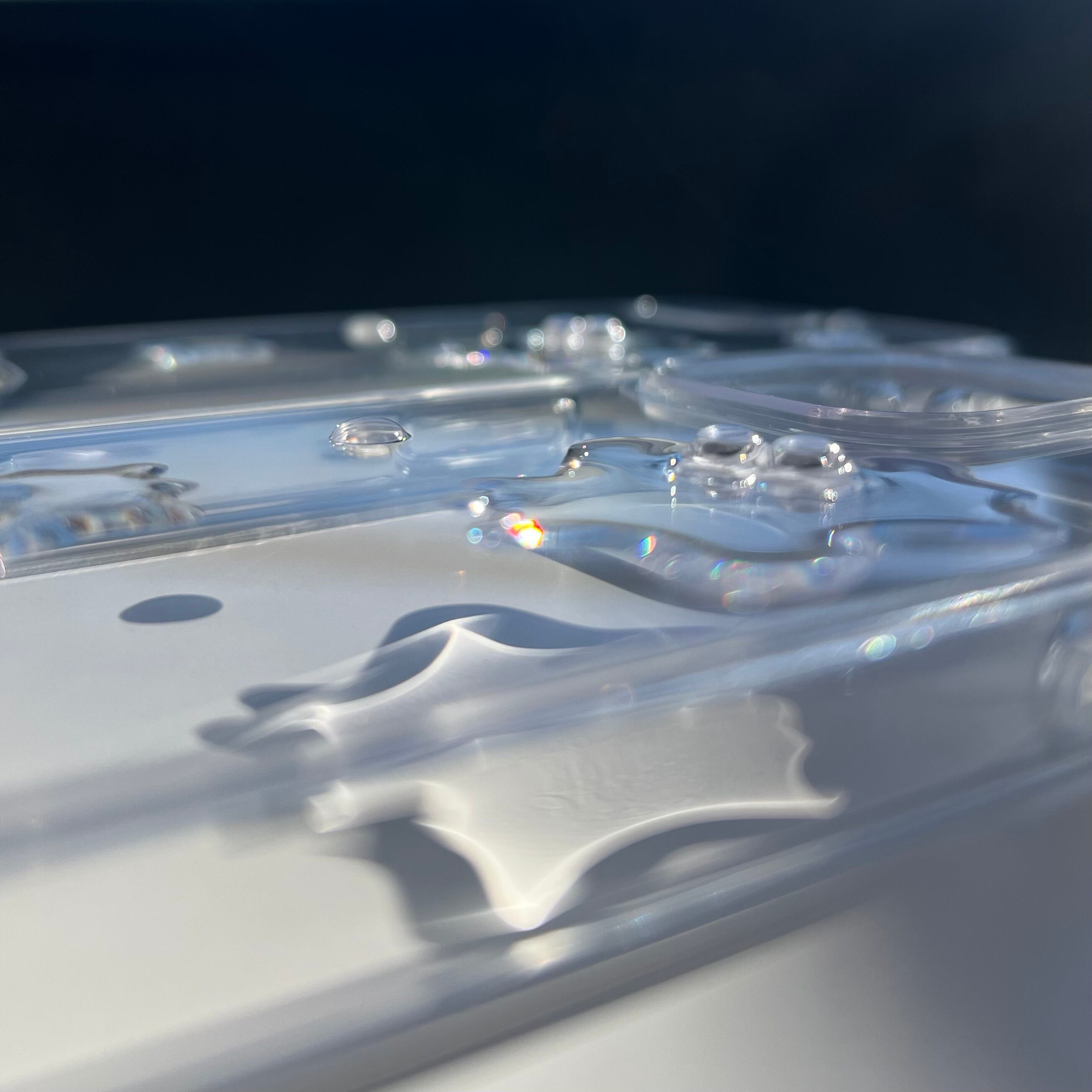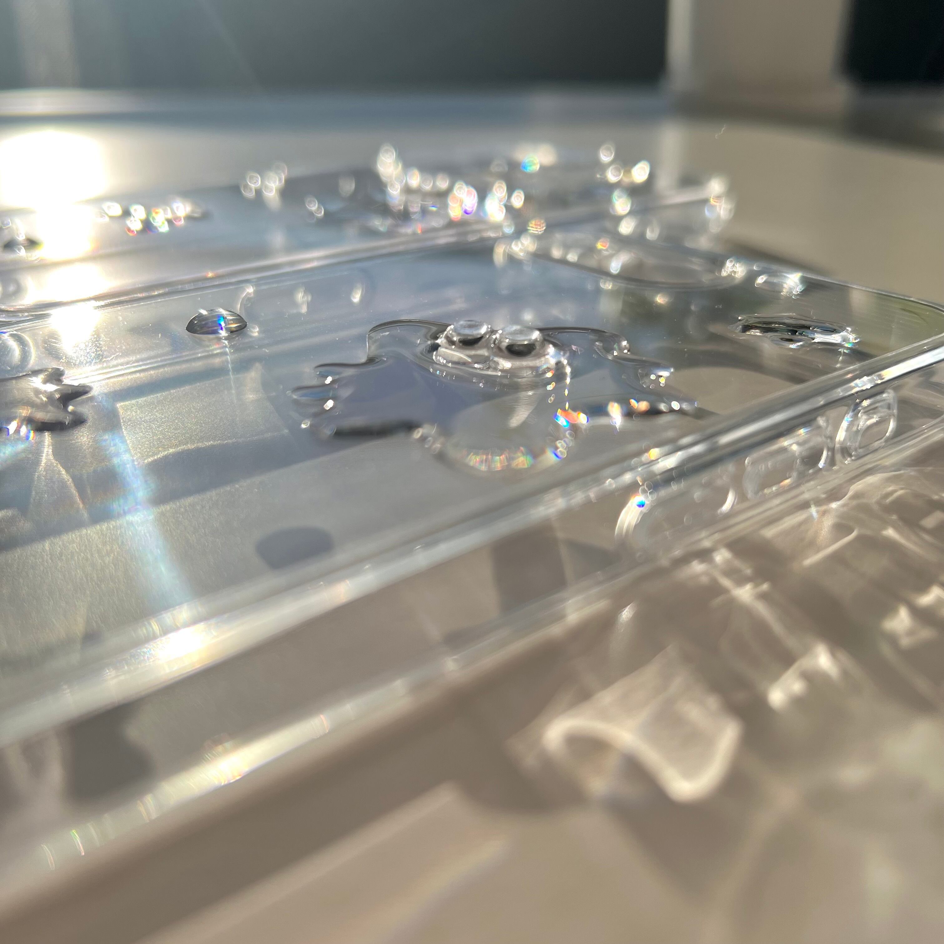 水滴デザインとおめめモチーフが可愛い、大人女子向けの透明クリアスマホケース。