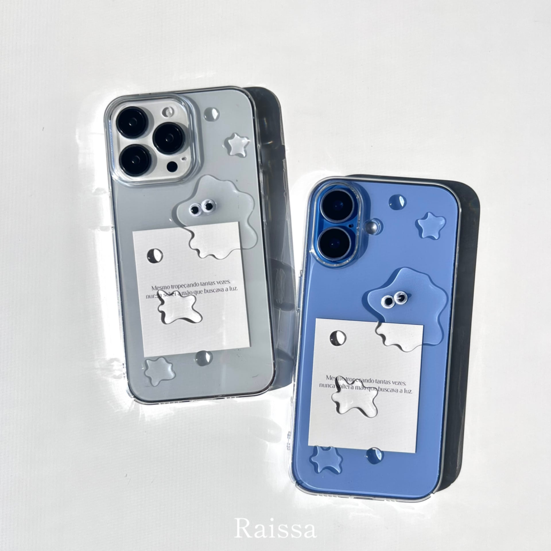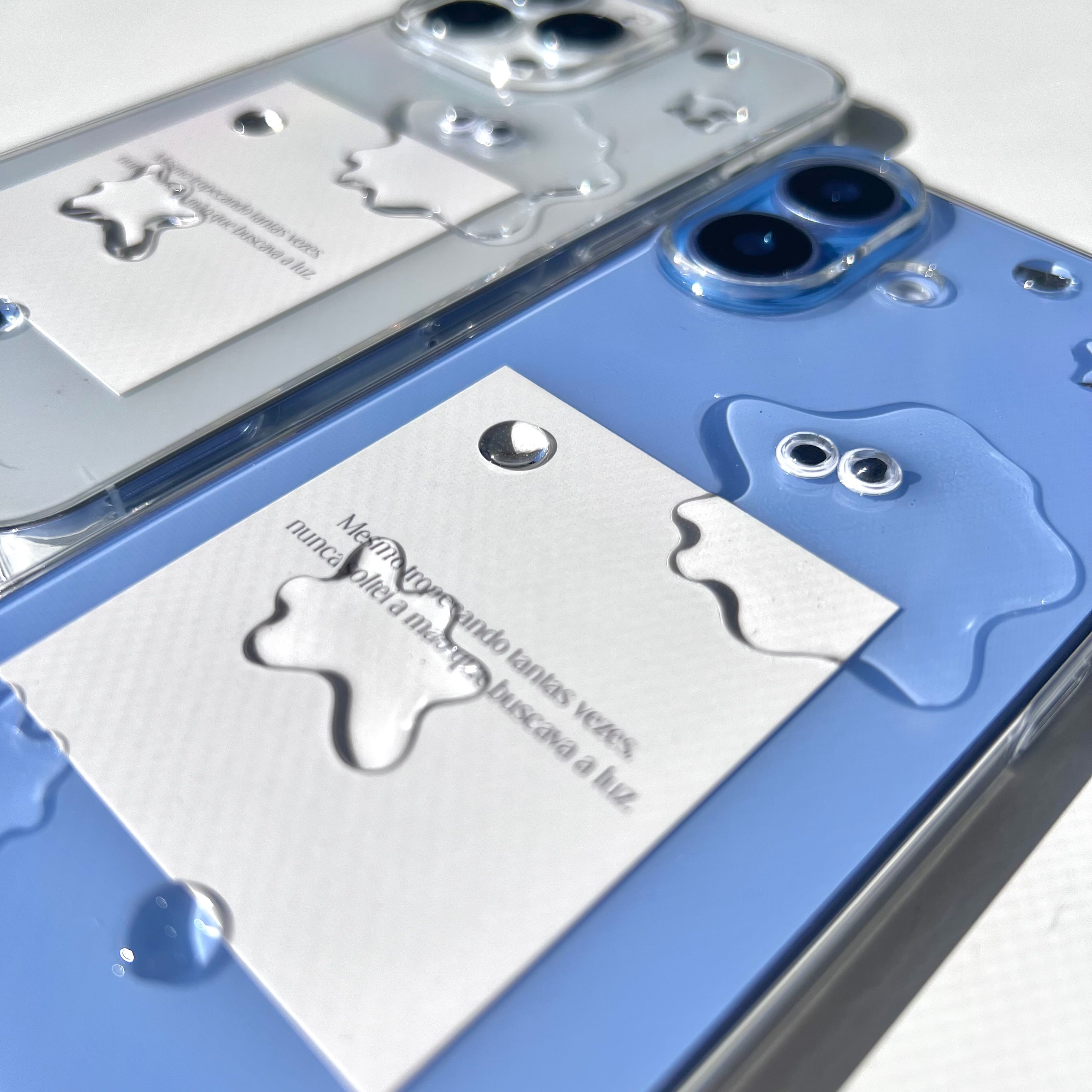 水滴デザインとおめめモチーフが個性的で、大人可愛い印象に仕上げた クリアケース です。